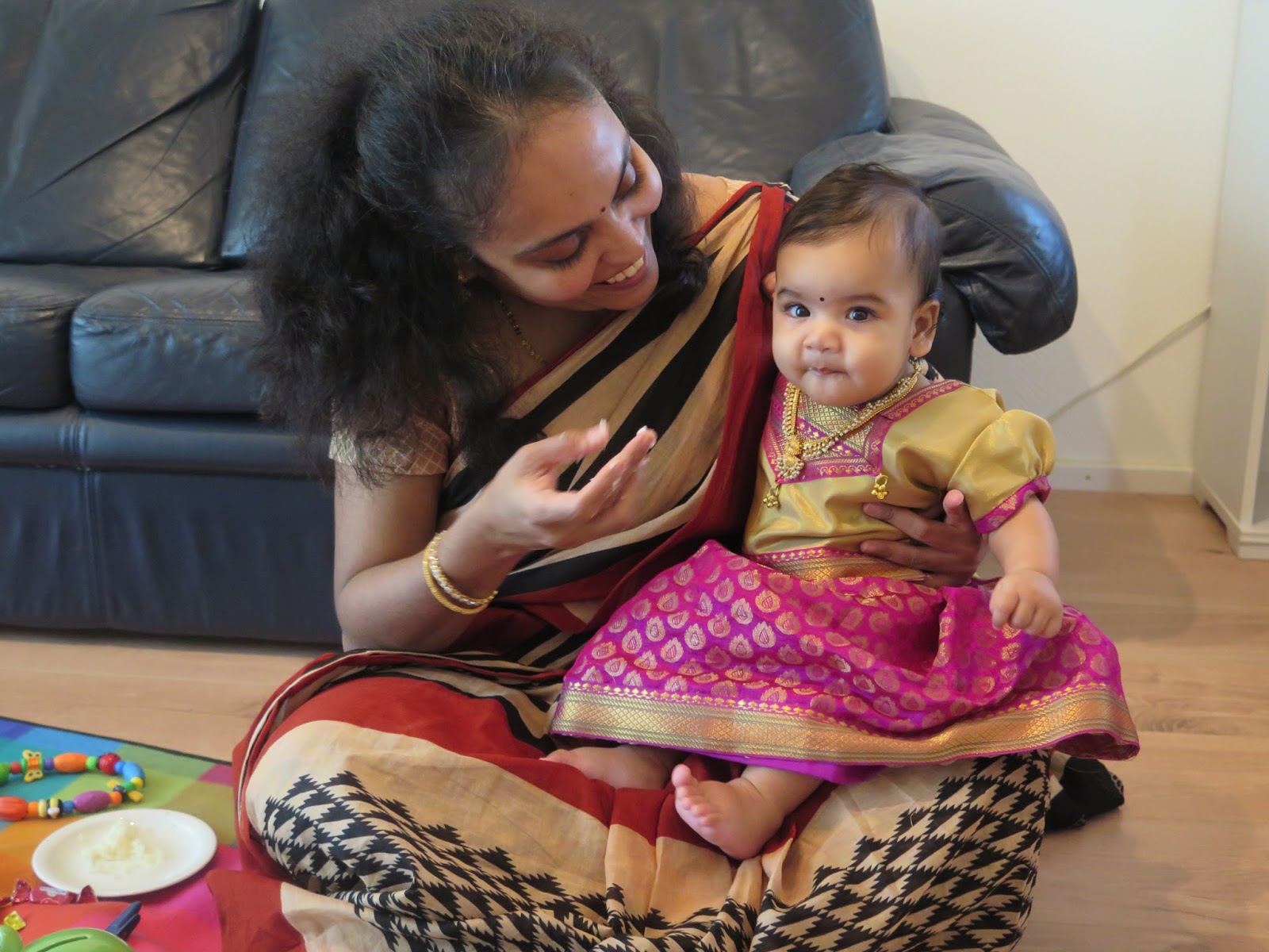 My mom had enough breastmilk until I was six months old. Then, there was not much. My parents not knowing how to feed an infant, gave me cerelac diluted like milk. I started to lose weight. My grandma who came to visit us was shocked to see me. She scolded my mom for being so ignorant. She started giving solid foods for me. Anisha, I am very much aware of the importance of good nutrition for you at this age. I am trying my level best to feed you nutritious food. I am not afraid to experiment, and you are enjoying most of the things I prepare for you or buy for you. I was not this happy anytime for being a biologist - it helps me to understand your nutritional needs better ! I realize that a biologist will be a great mom too :) I have ignored many of the cultural and traditional beliefs, and scientific misconceptions, when choosing food for you and I am happy I could do so. You are now eating egg yolks, liver, meats variety of vegetables and fruits, and of course my favorite food - idly :) But still, your main nutrition comes from breastmilk. You are loving food and that's what my aim is. I do not want to force you to gulp something (so as to finish my work ! ). I want that you enjoy eating good food. I avoid sugar, salt and cow's milk at any cost. And, I never give you something similar to cerelac which is nothing but crap. It contains loads of carbohydrate without any real nutritional benefit. I was shocked to hear people say, "give her cerelac, she will put on lots of weight" ! Indian's obsession about heavy and fair skinned babies will never cease to exist !